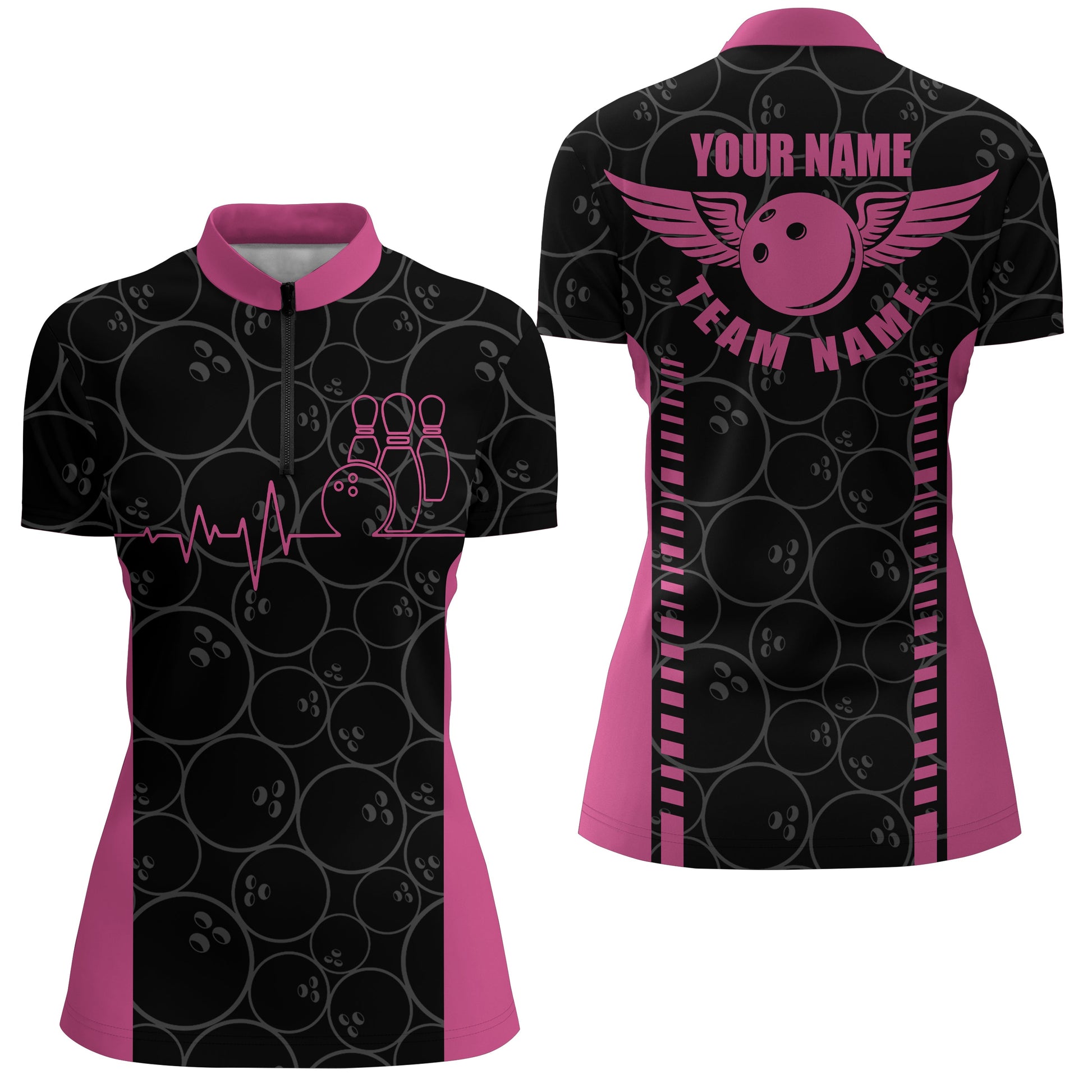 Personalised Pink Quarter-Zip Bowling Shirts for Women N5522