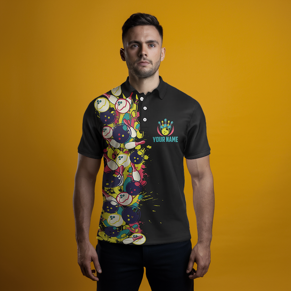 Funny Men's Bowling Polo Shirt - Personalised, Short Sleeve N62