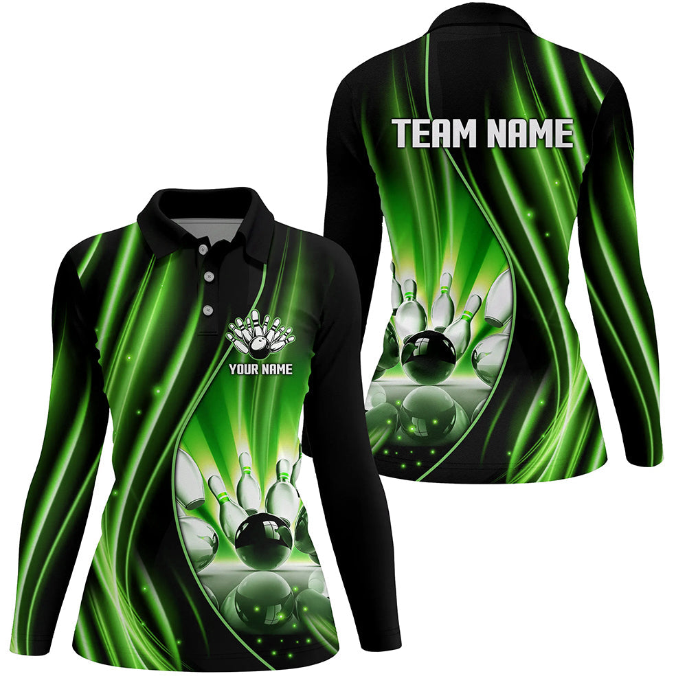 Women's Green & Black 1/4 Zip Polo - Custom Bowling Team Jersey N7859