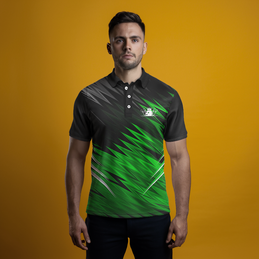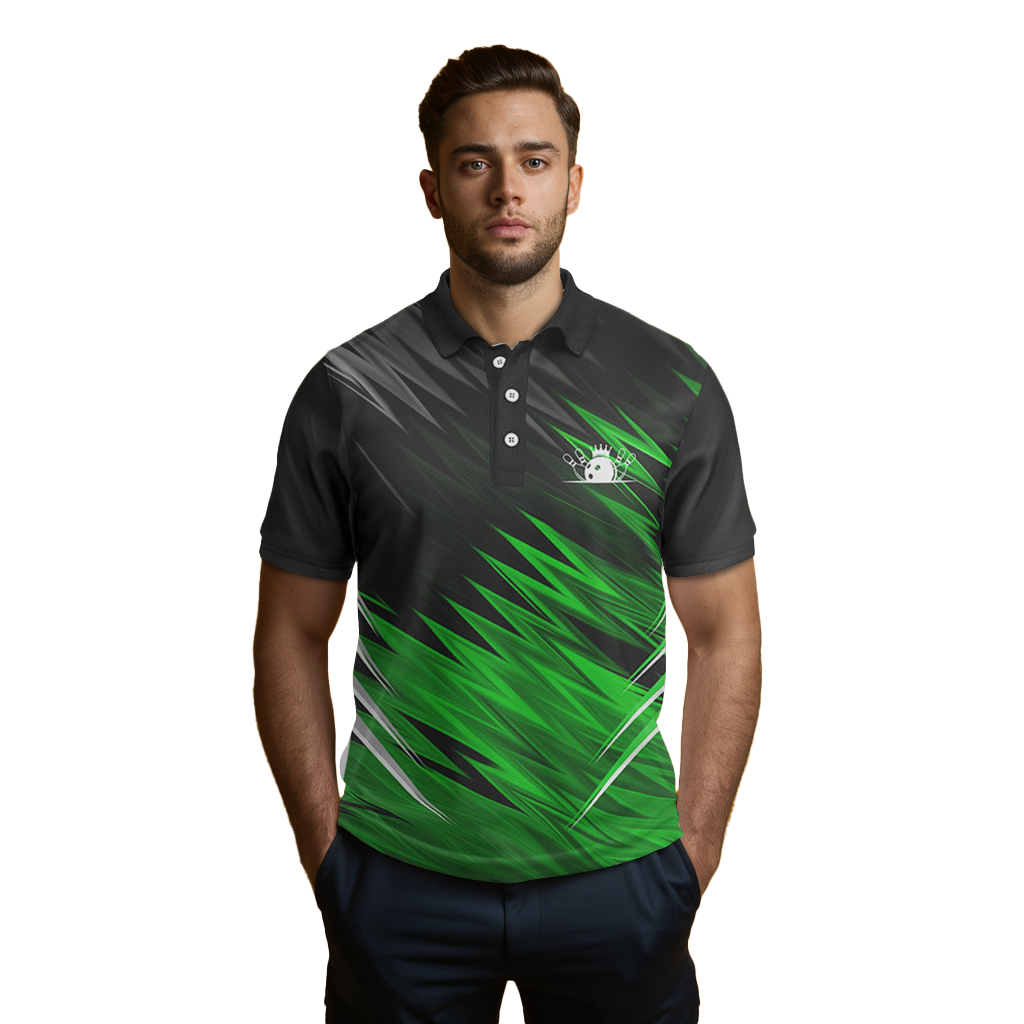 Green & Black Men's Short Sleeve Bowling Polo Shirt N6476