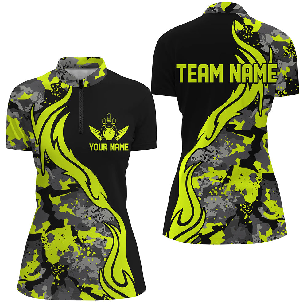 Women's Green Camo Custom Bowling Team Shirts I5516