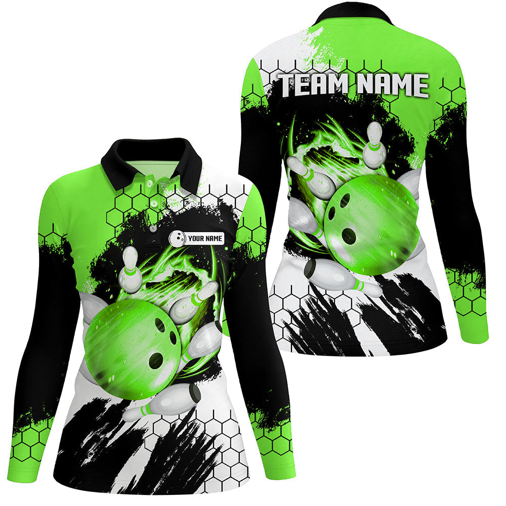 Green Flame Bowling Polo Shirt for Women - Custom Team League N7163