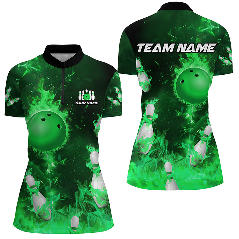 Green Flame 1/4 Zip Bowling Shirt for Men & Women B529