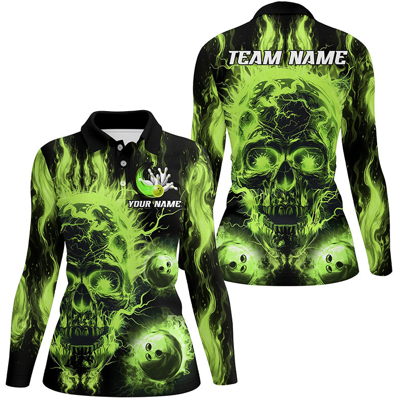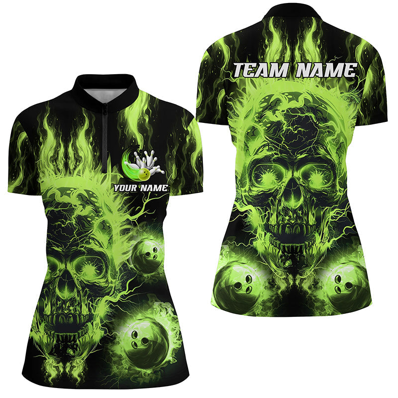 Women's Custom Green Flame Skull Bowling Shirts N7629