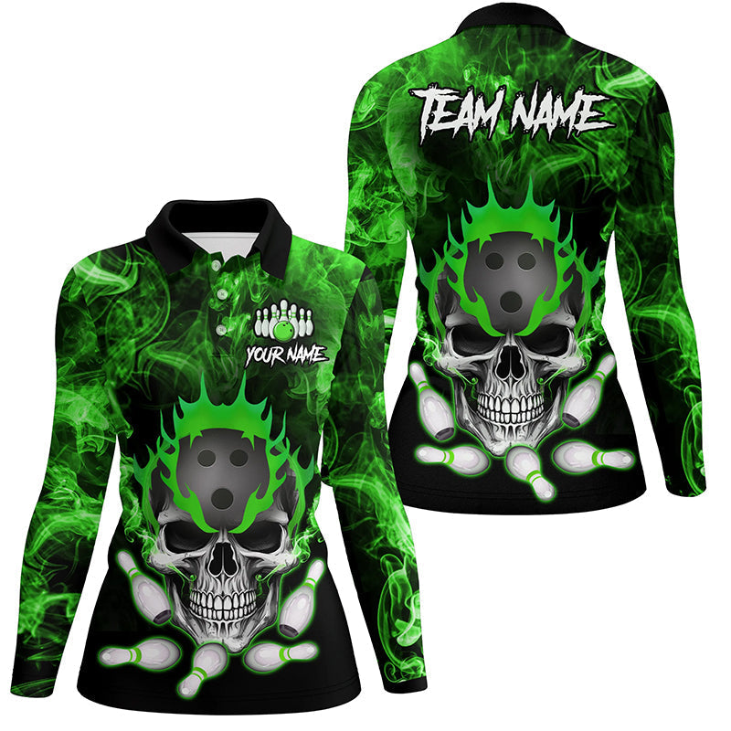 Green Skull Bowling Polo, Women's Quarter Zip Team Jersey N8211