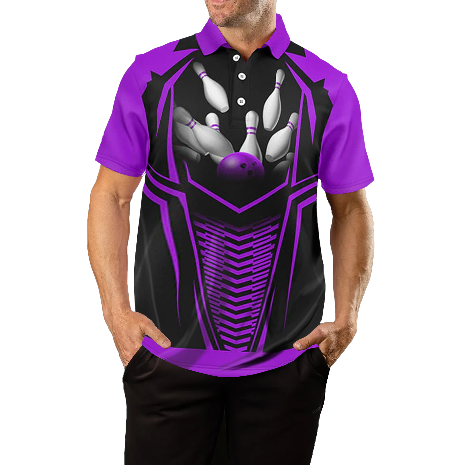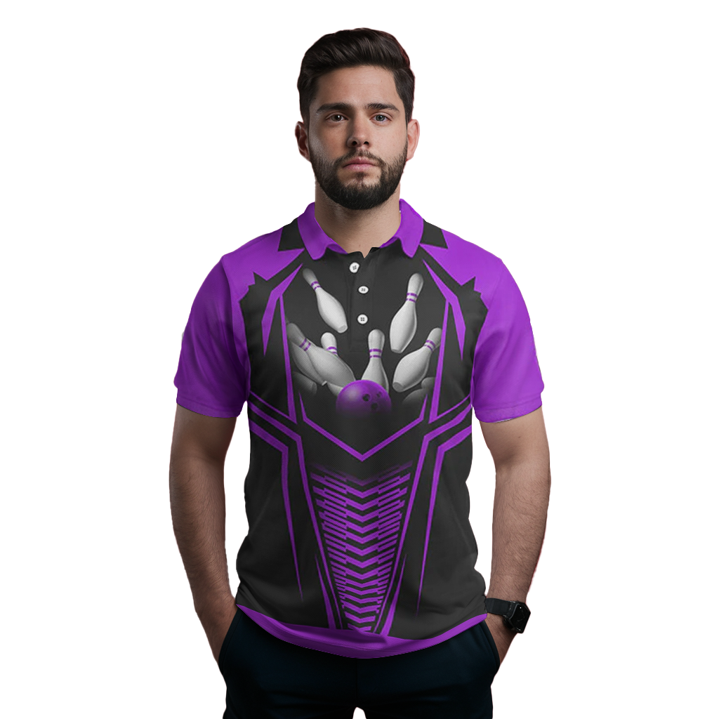 Men's Purple & Black Bowling Polo, Quarter Zip N8136