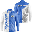 Men's Bowling Polo Shirt - Custom White & Blue Flame Design N7103