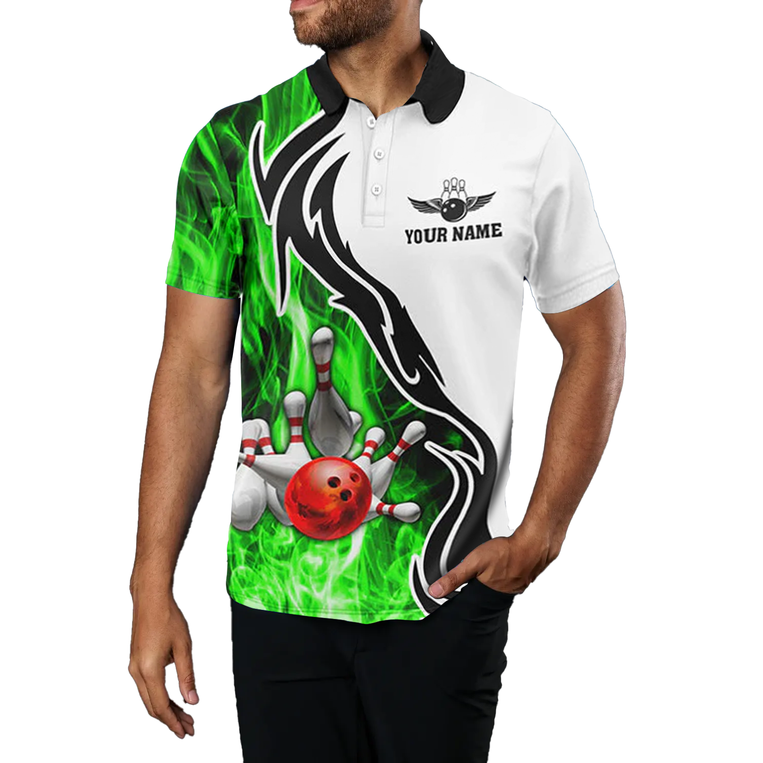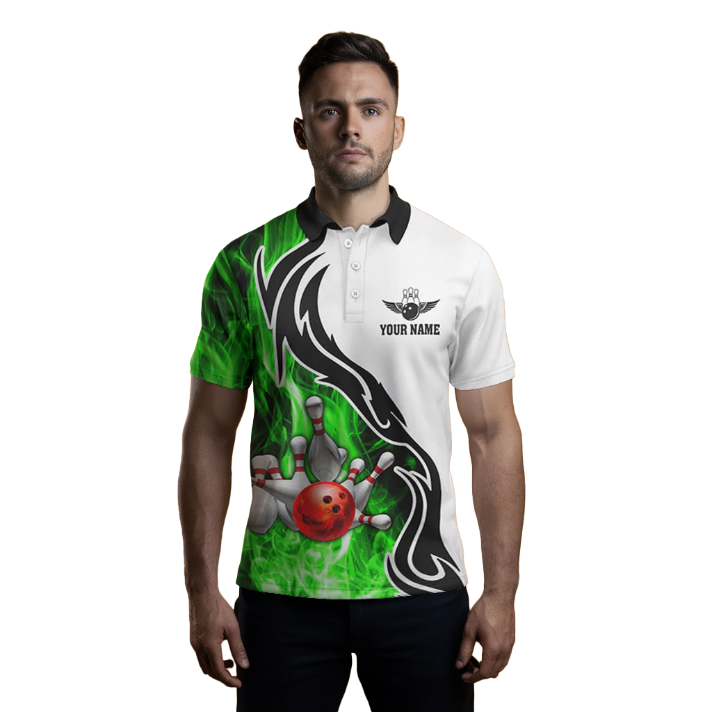 Men's Green Bowling Polo Shirt - Custom Strike Team Jersey N6405