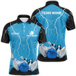 Men's Blue Bowling Polo Shirt - Lightning Storm Design N7084