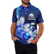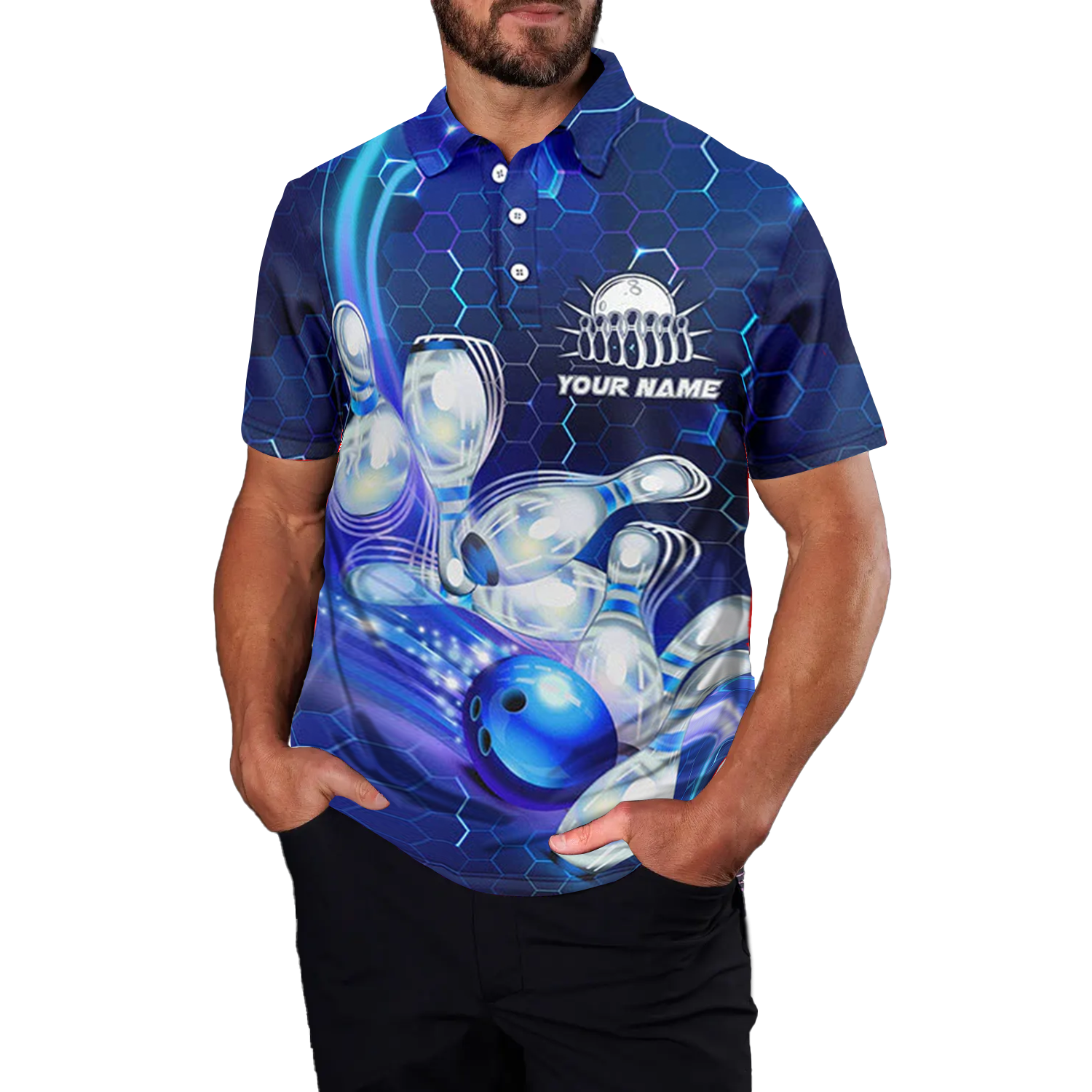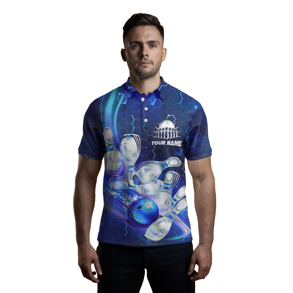 Men's Blue Hexagon Pattern Bowling Polo Shirt N6639