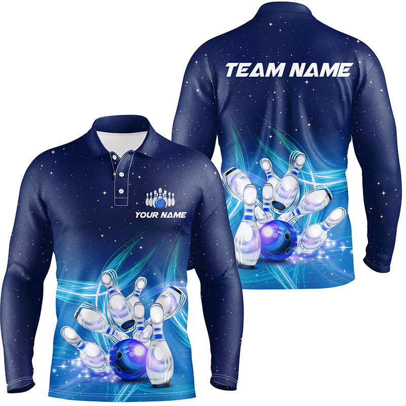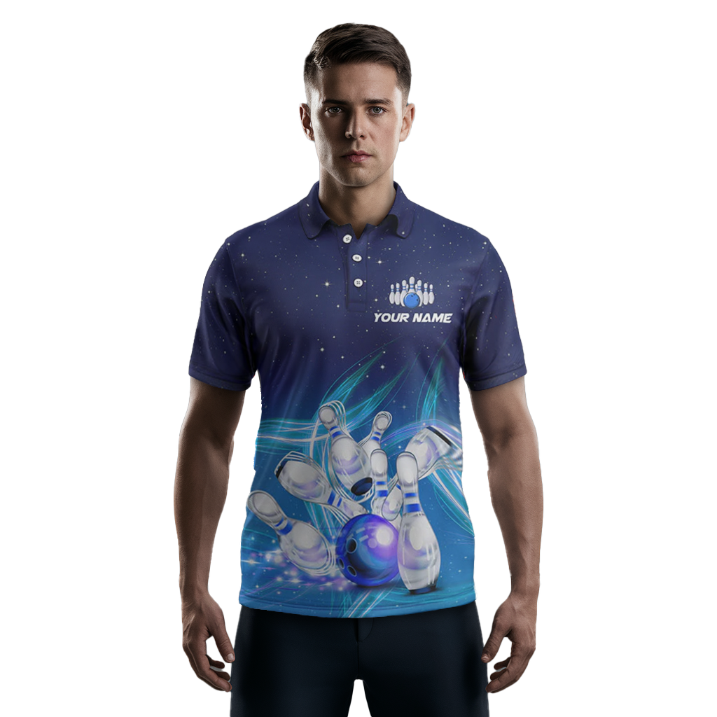 Men's Blue Thunder Bowling Polo Shirt - Custom Team Jersey T121