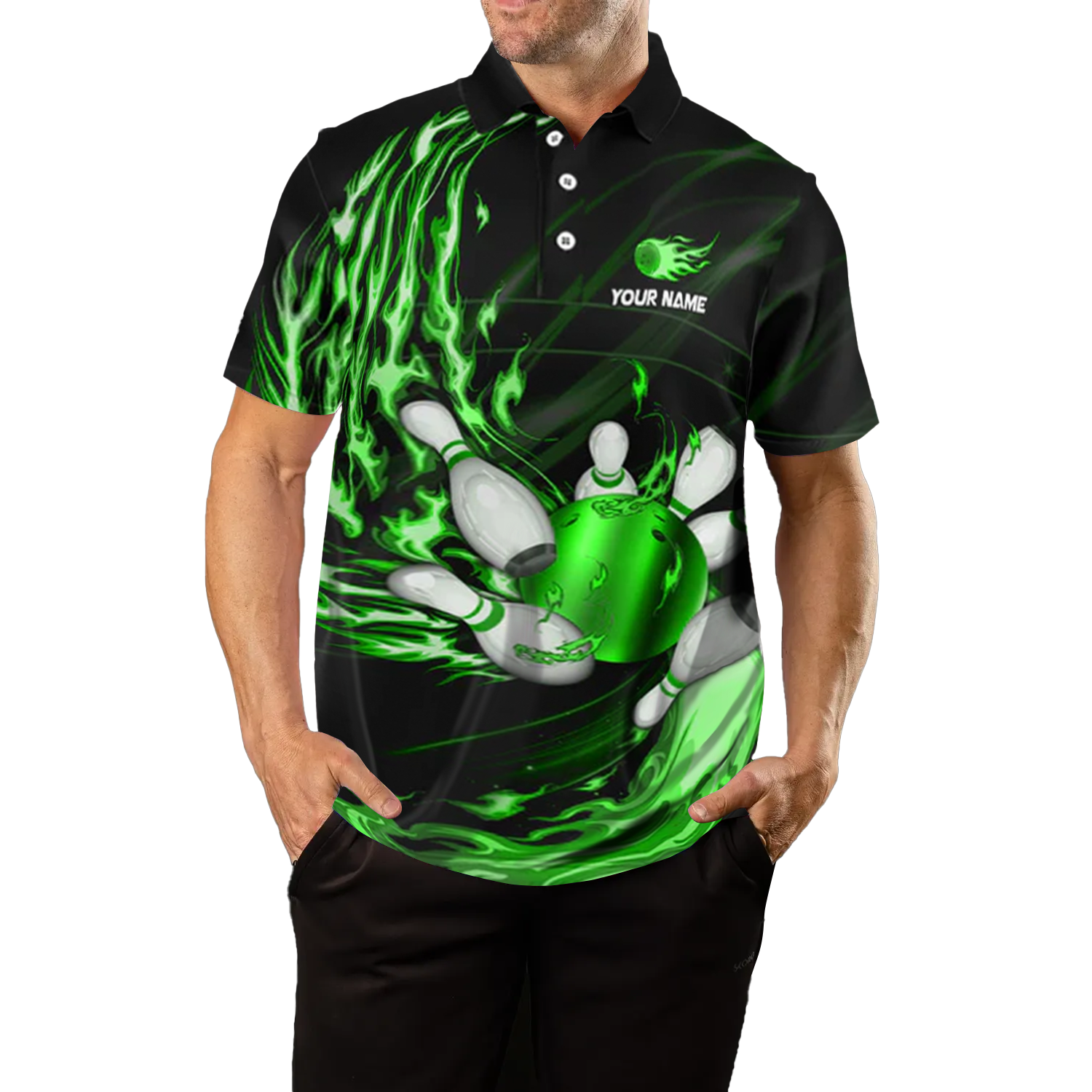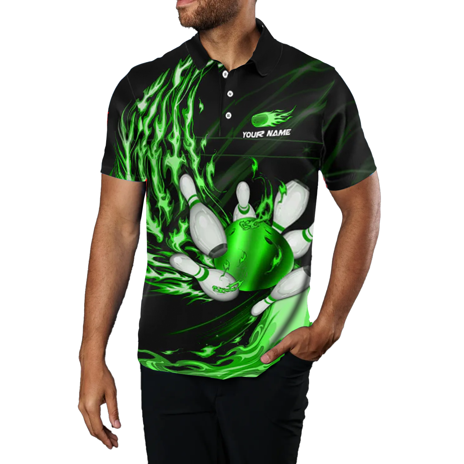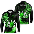 Men's Green Flame Bowling Polo Shirt - Custom Team Jersey N7370