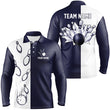 Navy Blue & White Vintage Bowling Polo Shirt for Men N6480