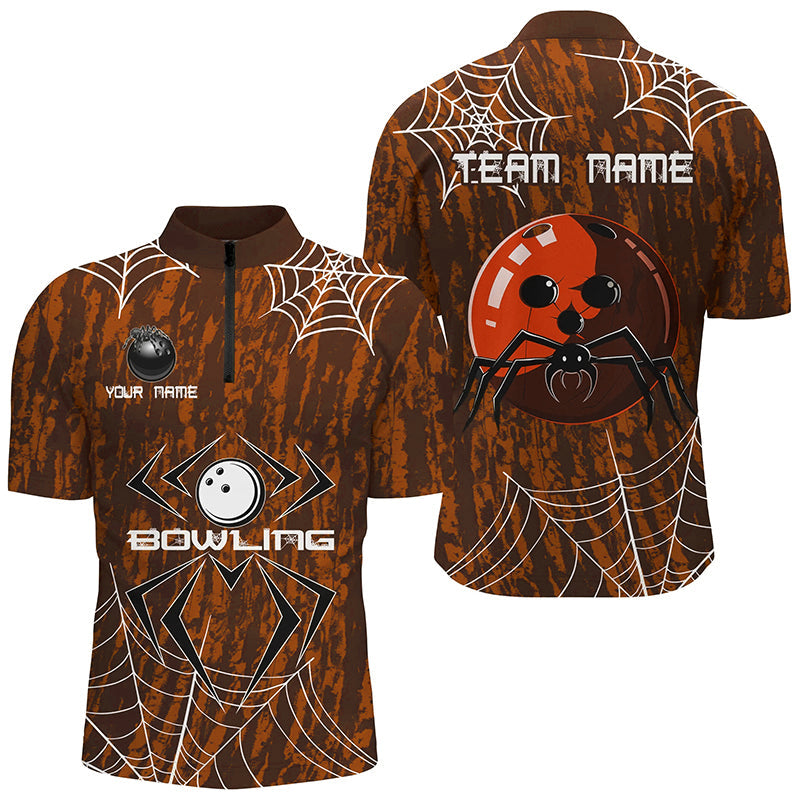 Orange Camo Bowling Polo, Men's 1/4 Zip Halloween Jersey N8344