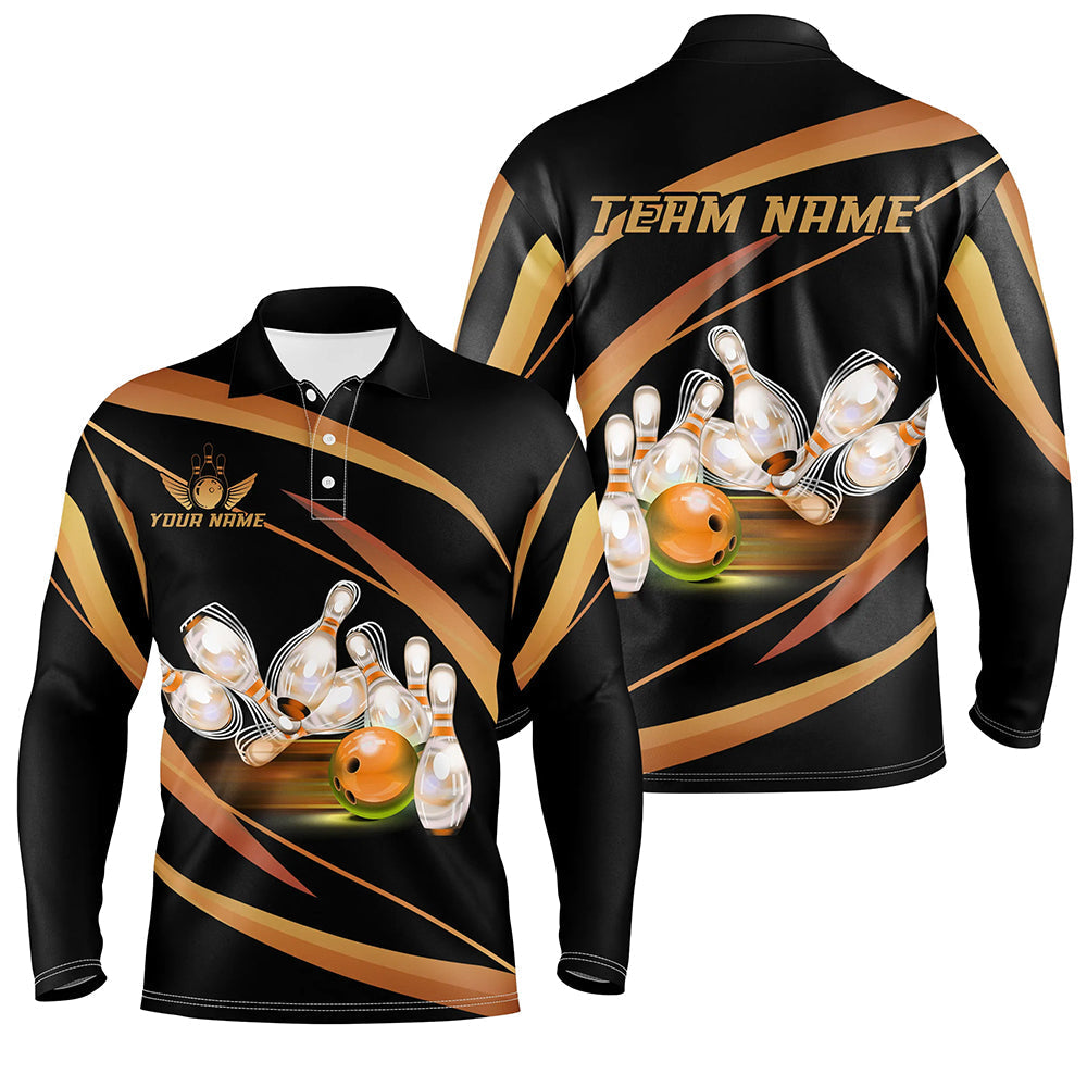 Men's Custom Black & Gold Bowling Shirts N8347