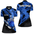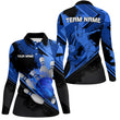 Women's Black & Blue Flame Bowling Polo, Quarter Zip N7579