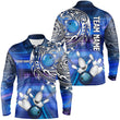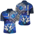 Men's Custom Blue Tribal Bowling Polo, 1/4 Zip N8339