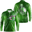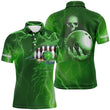 Men's Green Lightning Bowling Polo Shirt - Custom Name & Team Skull N6493