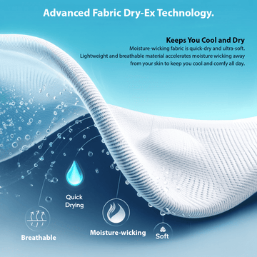 Advanced Fabric Dry-ex Technology: breathable, moisture-wicking, quick-drying fabric used by pro athletes.