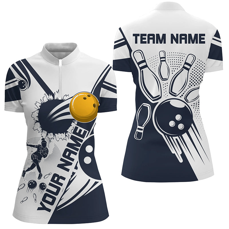 Women's 1/4 Zip Personalised Bowling Shirt Q408