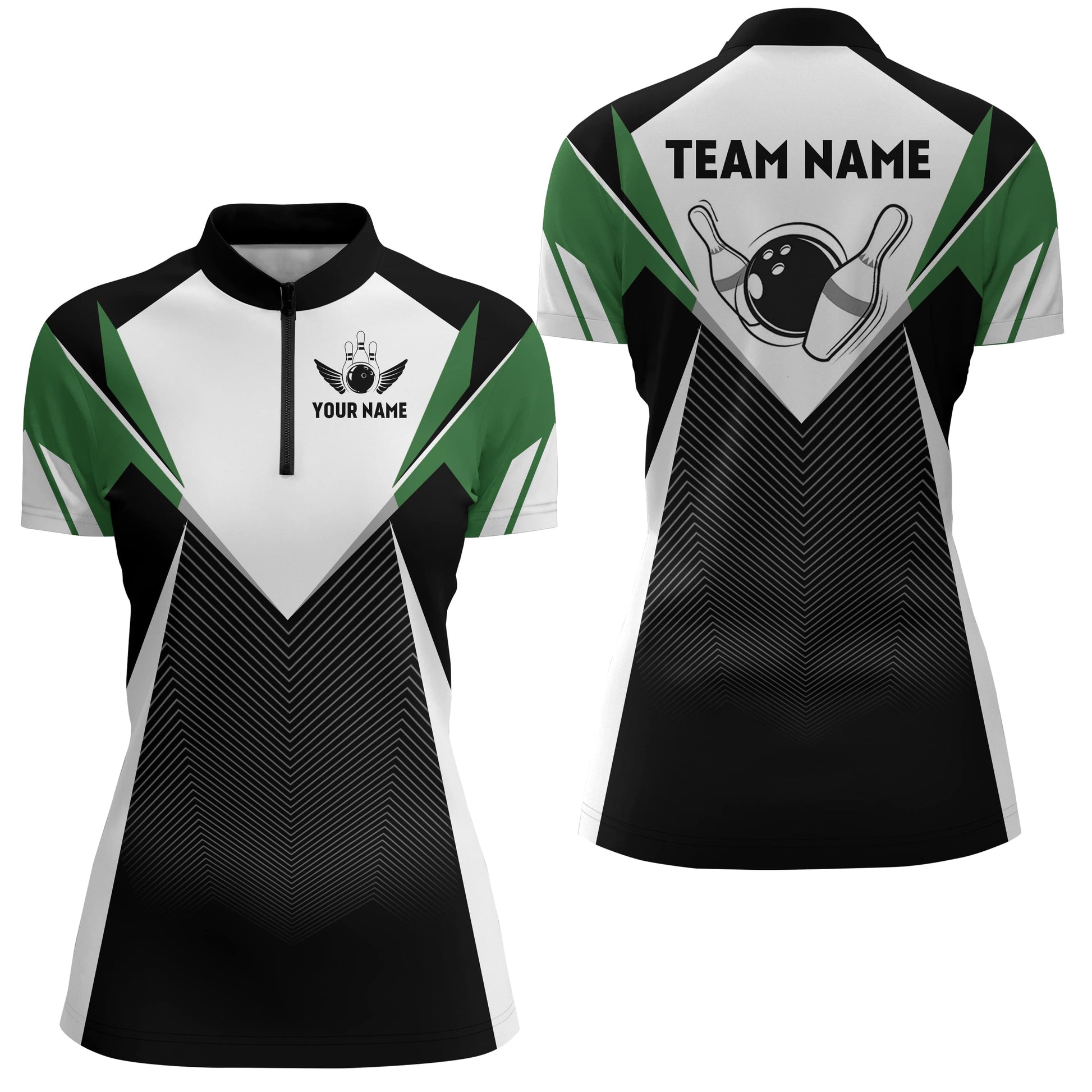 Custom Green Bowling Quarter-Zip Shirt for Women B252