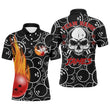 Men's Black Flame Bowling Polo Shirt with Skull Pins N02