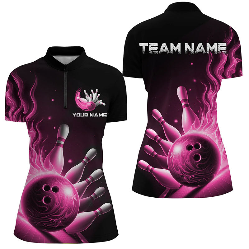 Women's Pink Flame Bowling Polo Shirt I7291