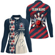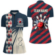 Women's Retro Bowling Polo, Red, White & Blue, Quarter Zip N7722
