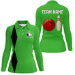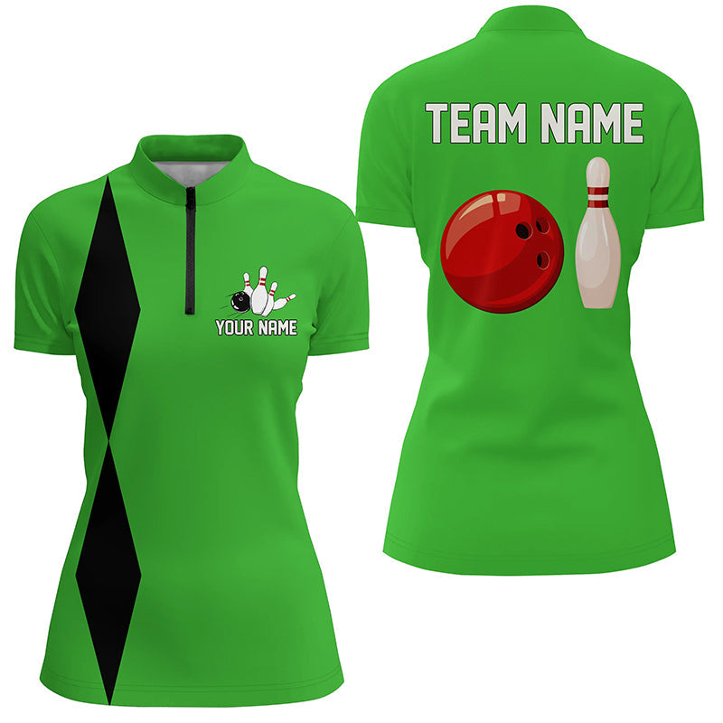 Personalised Green Retro Women's Bowling Polo, Quarter Zip N8002