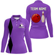 Personalised Purple Retro Women's Bowling Polo, Quarter Zip N8003