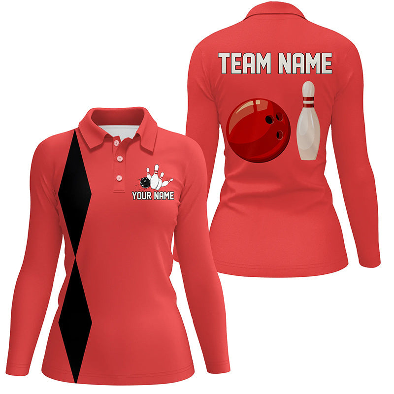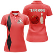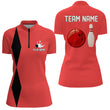 Personalised Retro Women's Bowling Polo, Quarter Zip, Red N8004