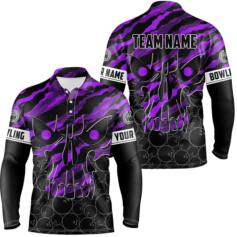 Personalised Purple Camo Skull Bowling Polo Shirt for Men N7322