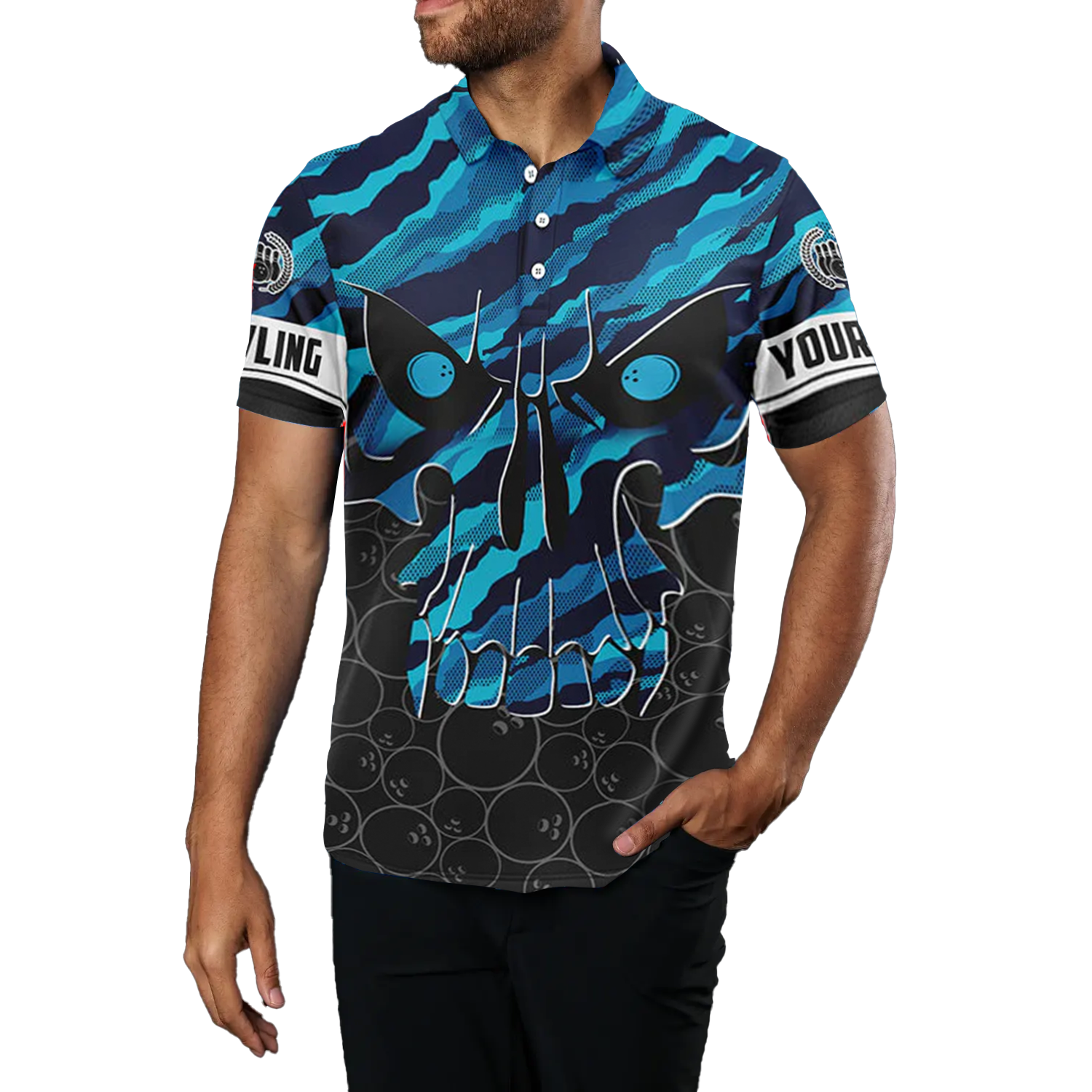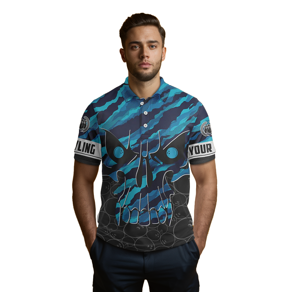 Men's Custom Blue Camo Skull Bowling Polo Shirt N6410