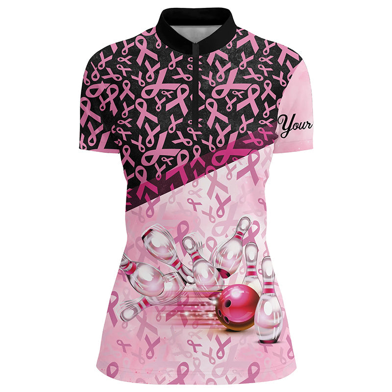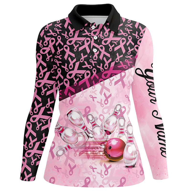 Women's Pink & Black Ribbon Bowling Shirt - Breast Cancer Awareness N7949