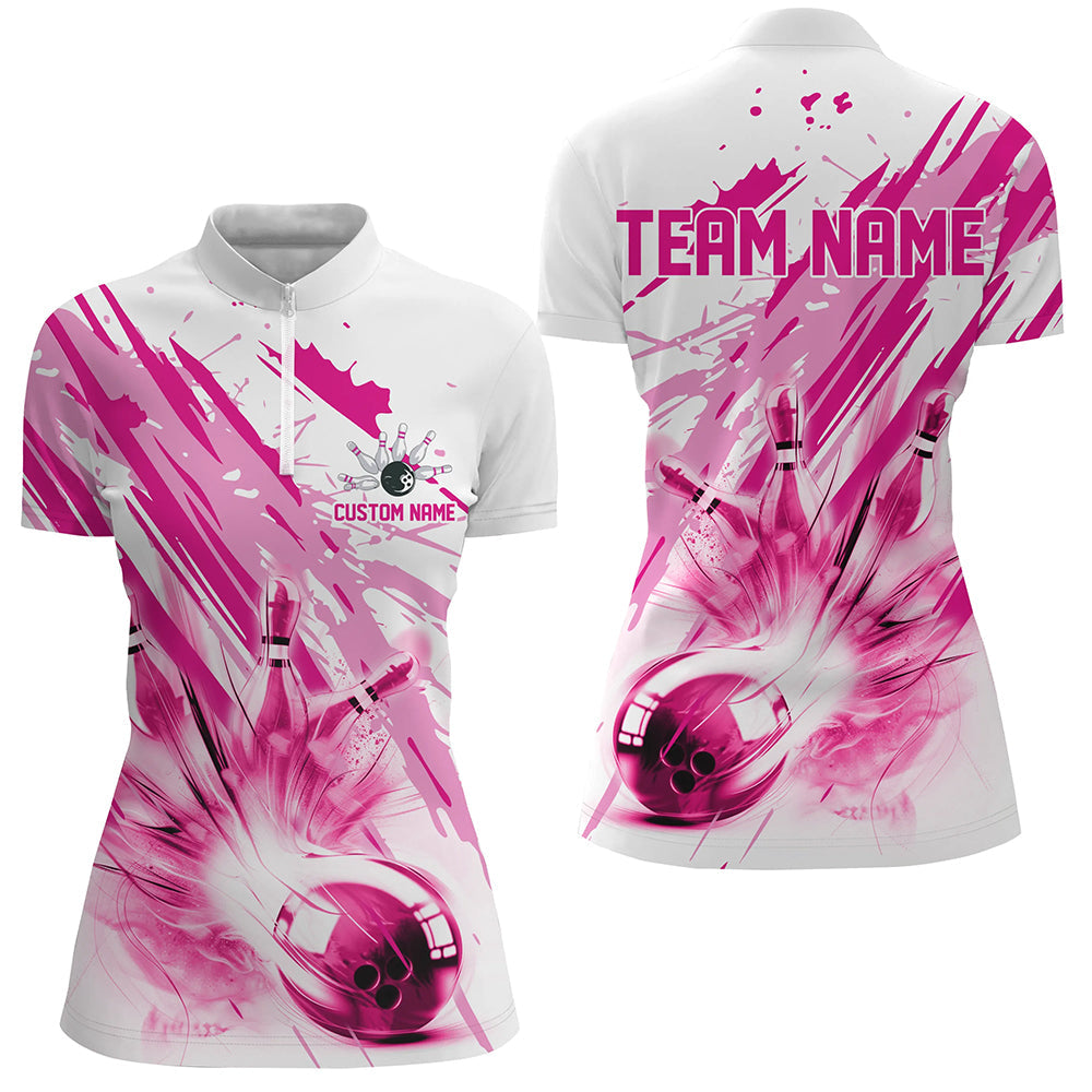 Women's Pink Bowling Polo/Quarter Zip Team Shirt I6261