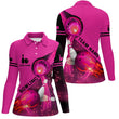 Women's Custom Pink Flame Bowling Polo Shirt N6541