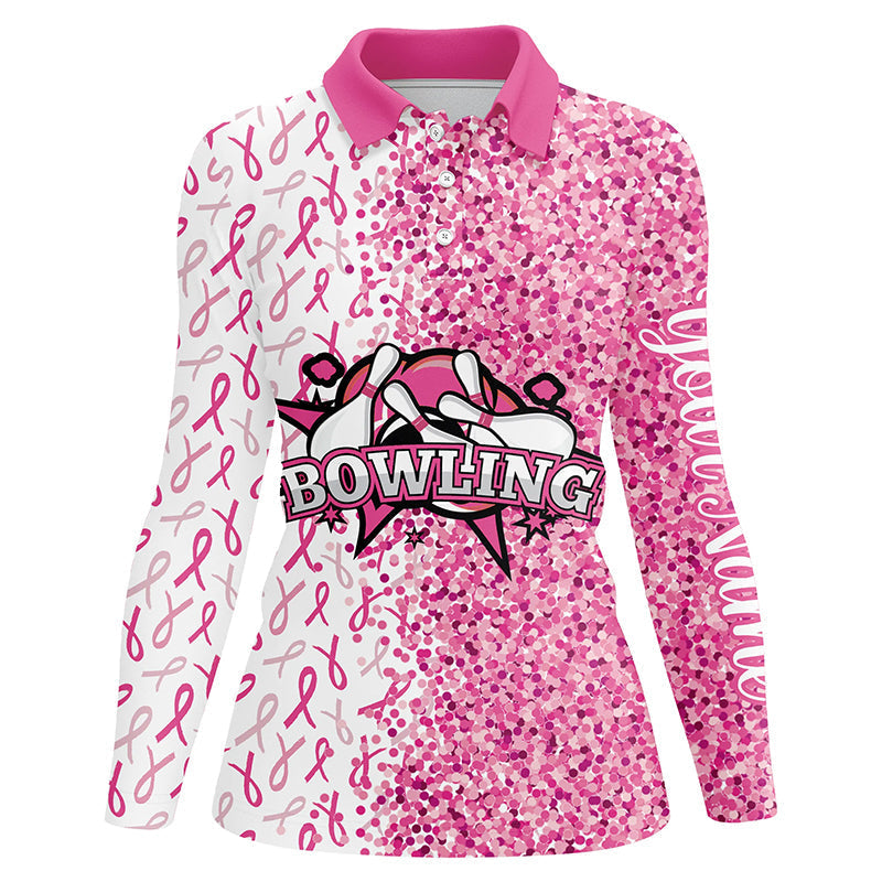 Pink Glitter Ribbon Bowling Shirts for Women - Breast Cancer Awareness N8104