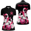 Pink Ribbons Women's Bowling Shirts - Custom Breast Cancer Awareness Black Jerseys N8308