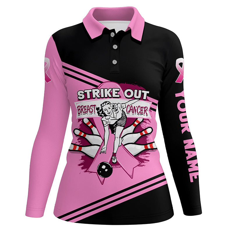 Pink Women's Bowling Polo Shirt - Custom Strike Out Breast Cancer Jersey N6382