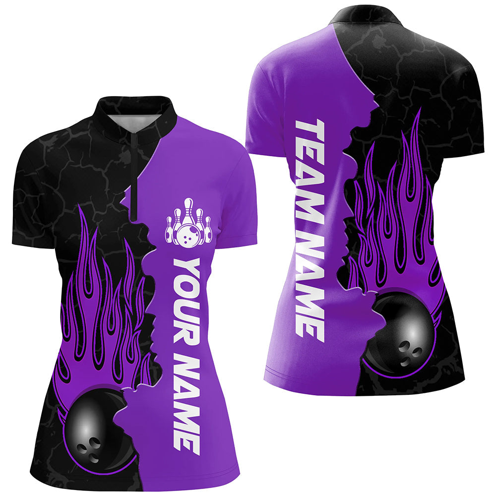 Custom Purple Flame Bowling Quarter Zip Shirts for Men & Women B471