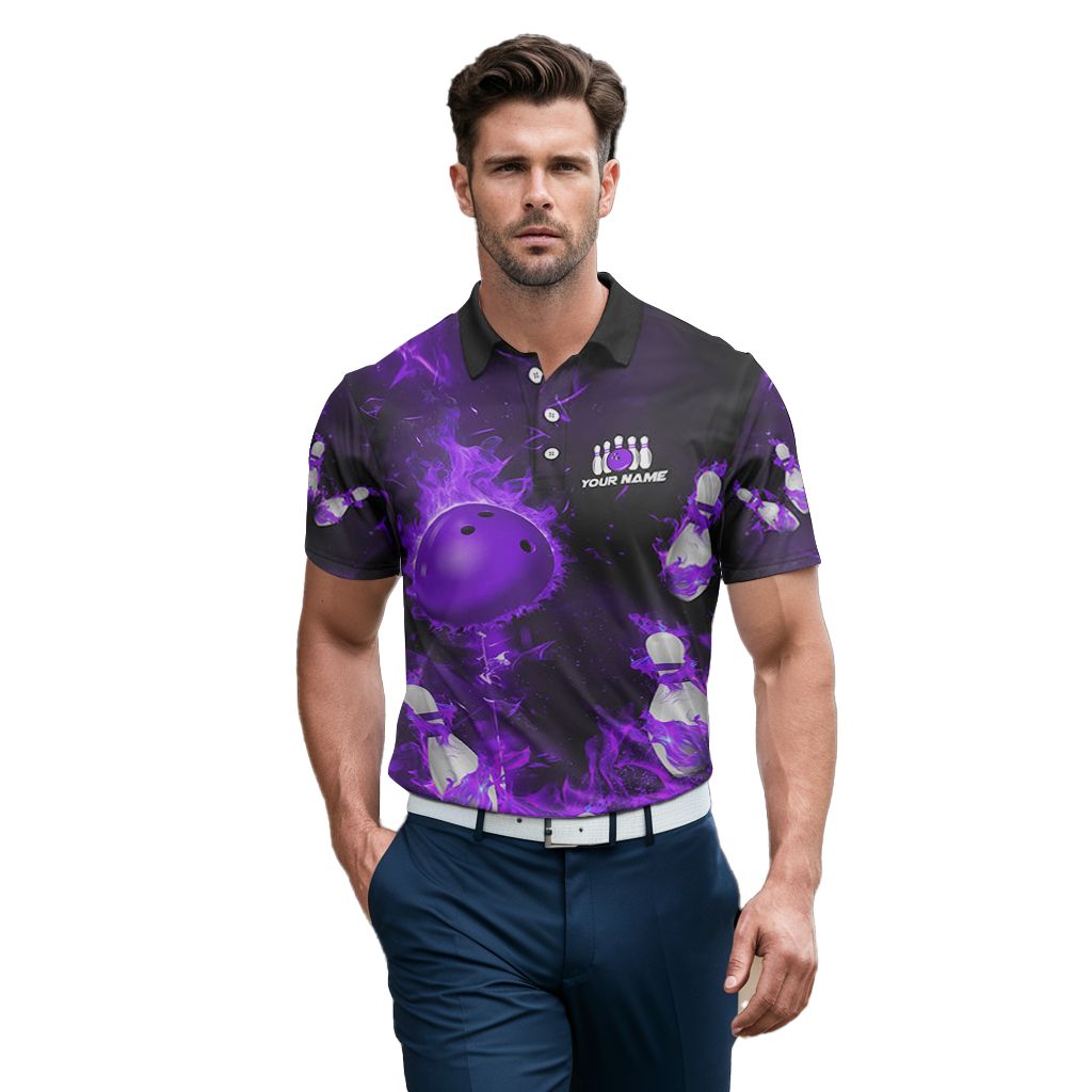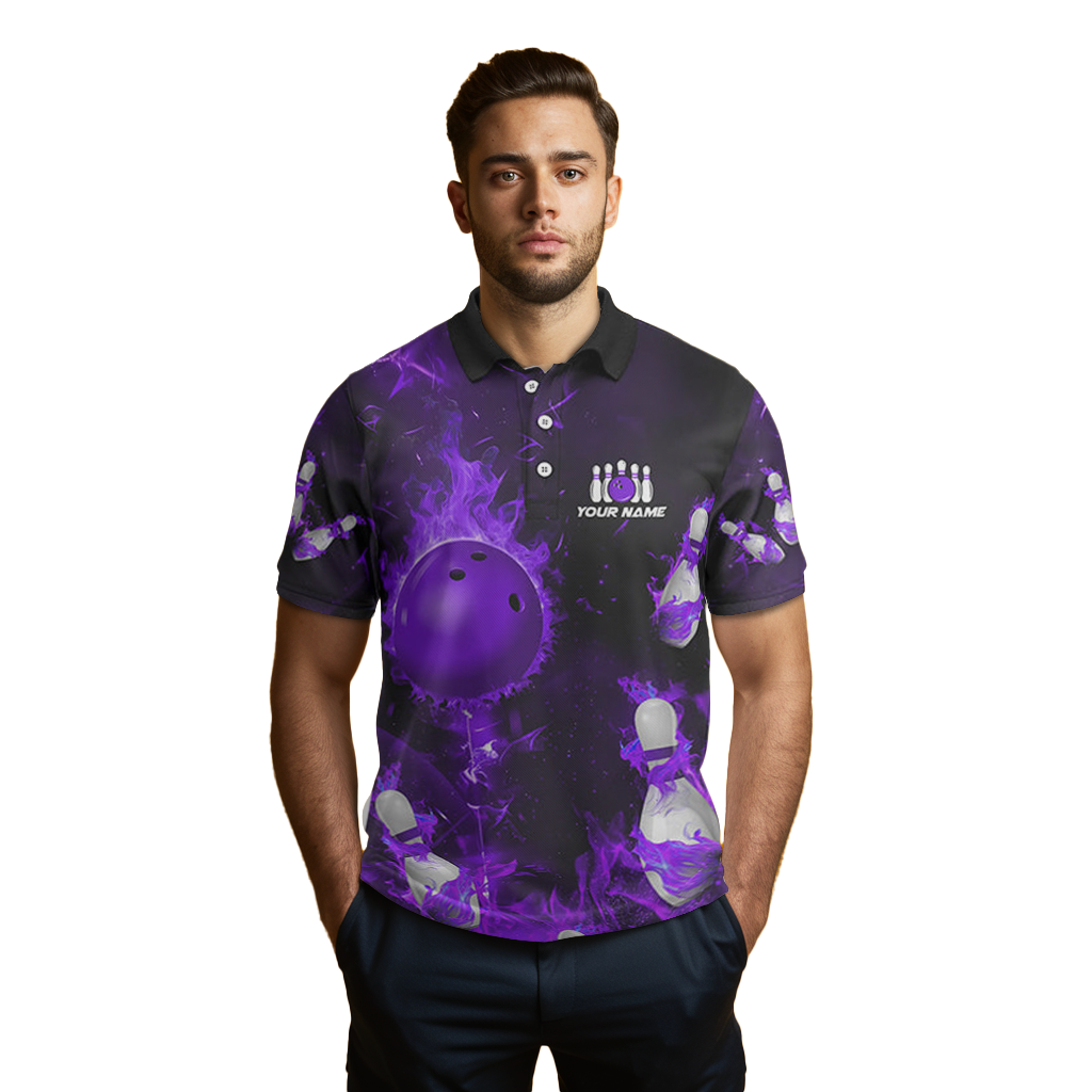 Custom Purple Flame Bowling Polo for Men & Women B529