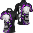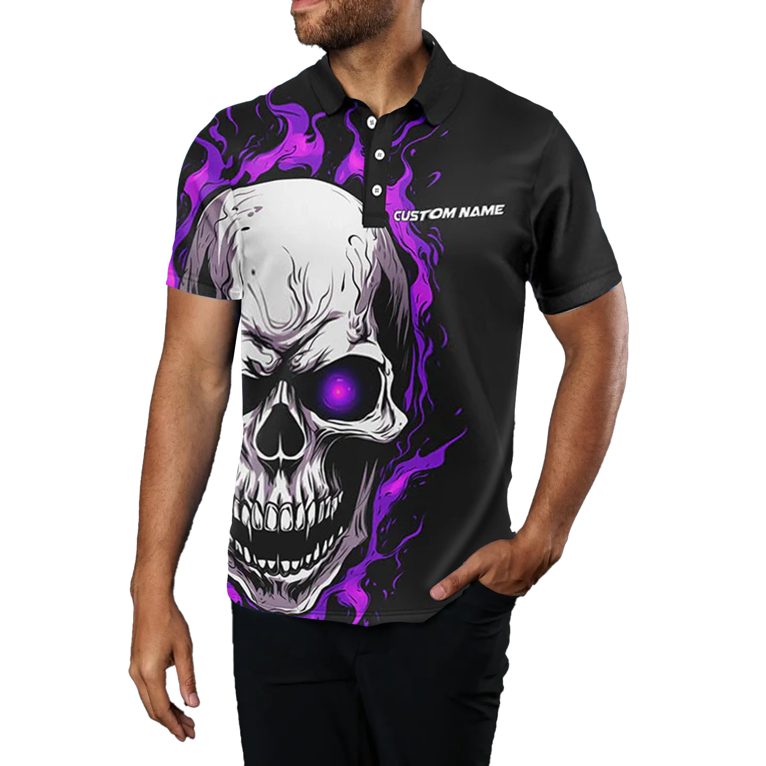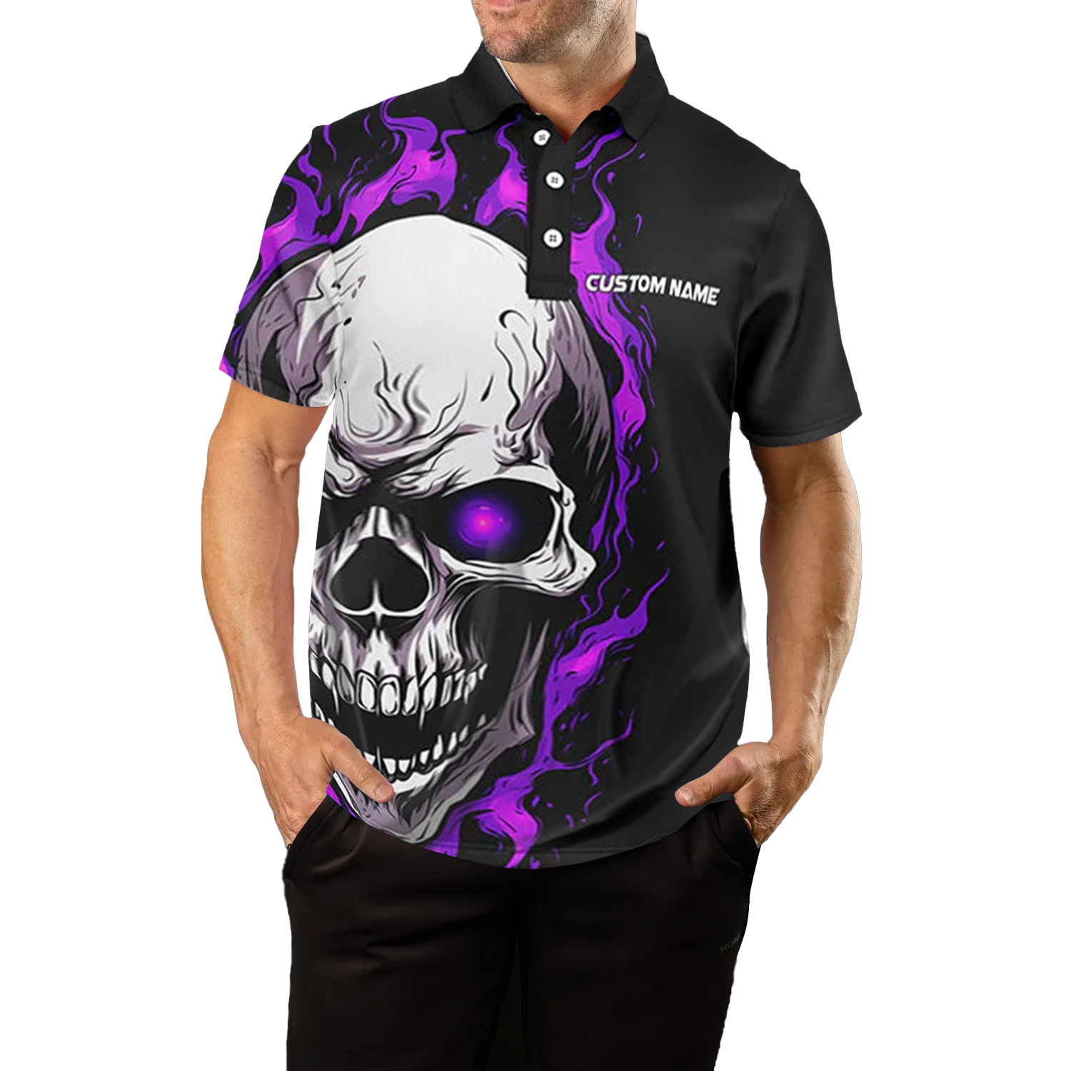 Men's Custom Purple Flame Skull Bowling Polo Shirt I5273