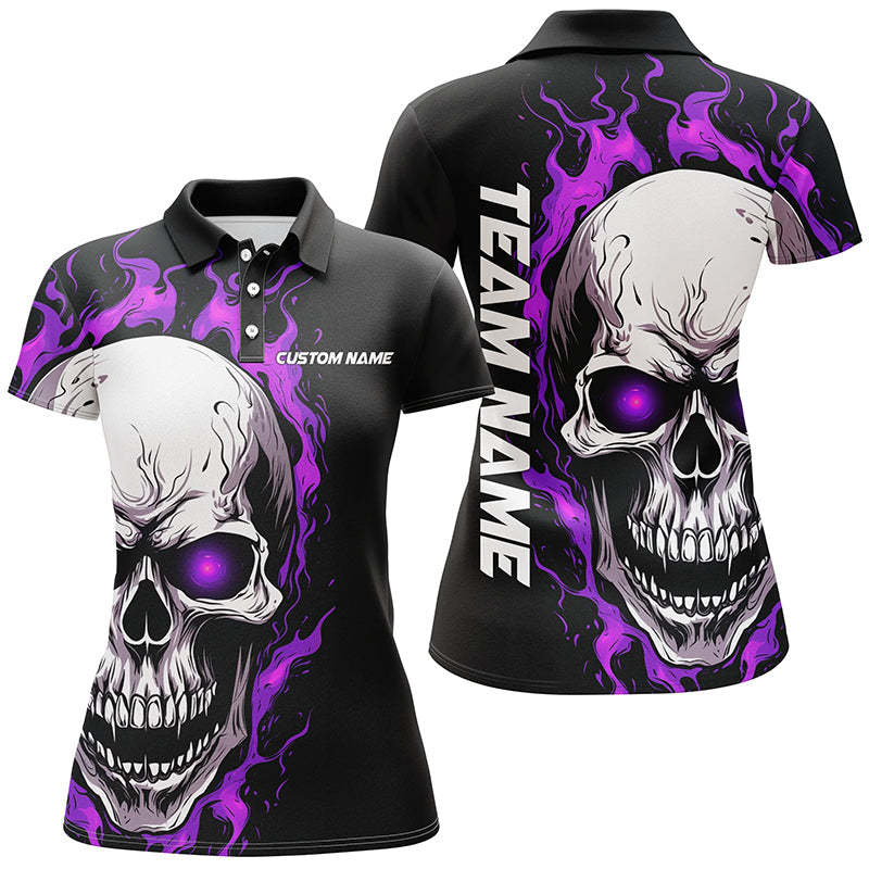 Women's Purple Flame Skull Bowling Polo Shirt I5273