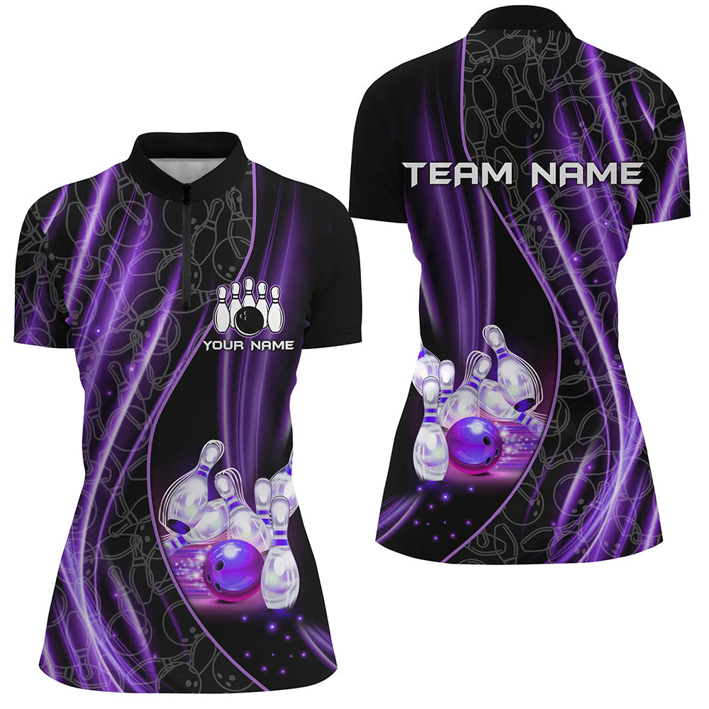 Purple Light Bowling 1/4 Zip Shirt for Couples B504
