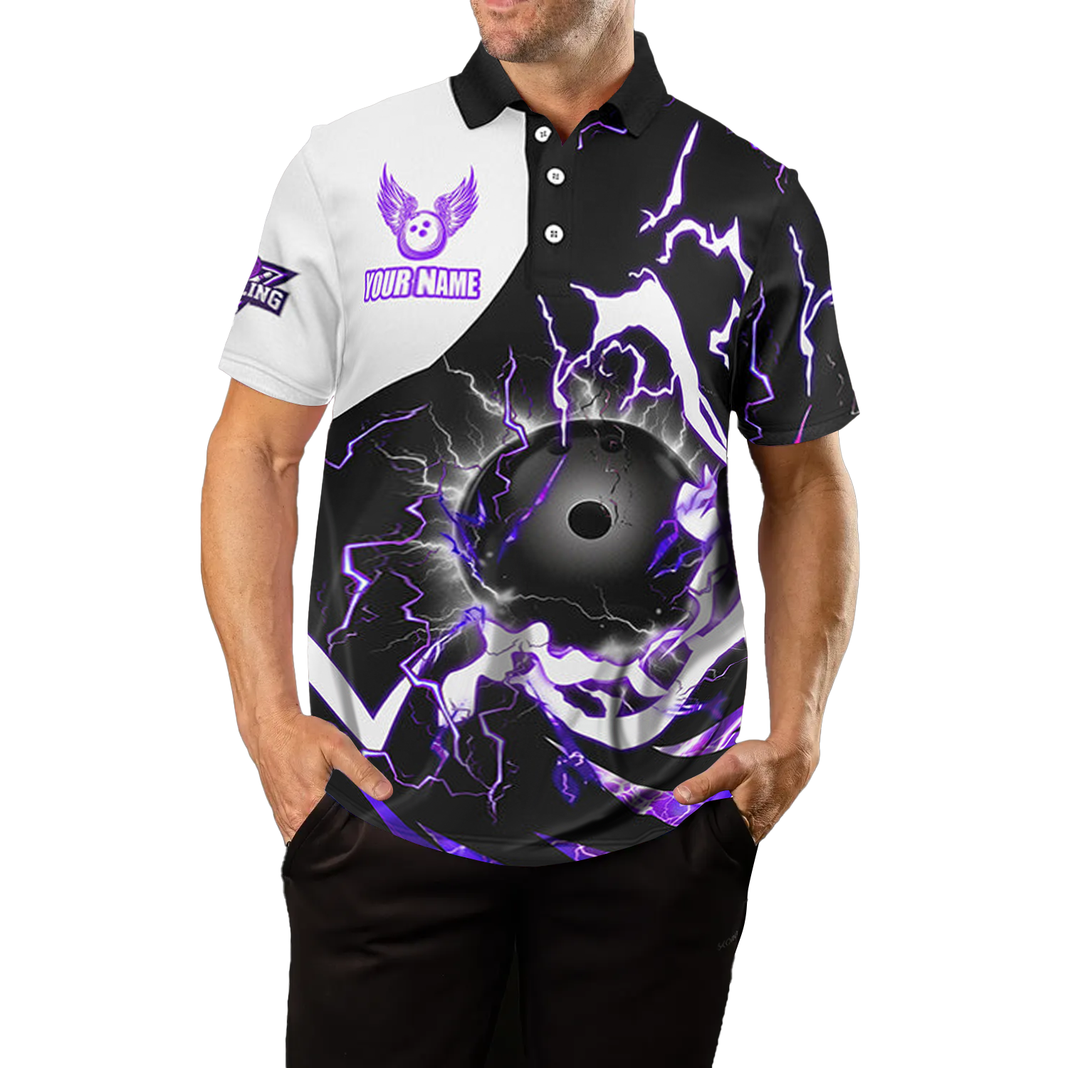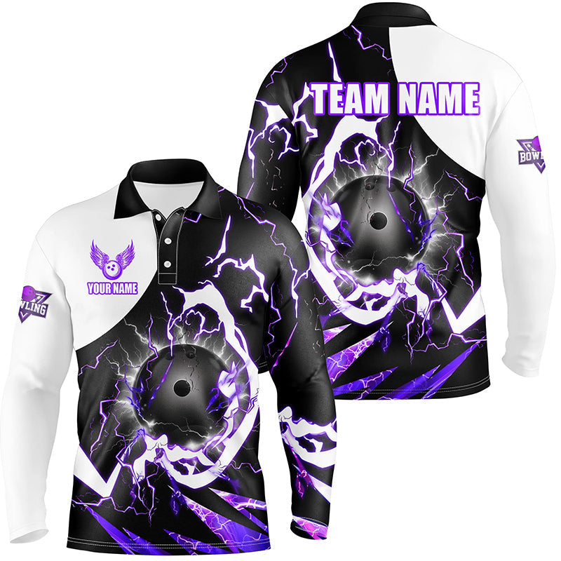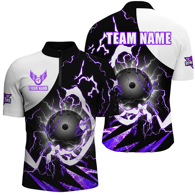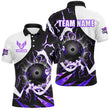 Custom Men's Purple Lightning Bowling Polo Quarter Zip n8231