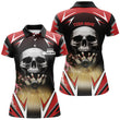 Women's Red & Black Bowling Skull Polo Shirt - Custom Team Jersey N6251