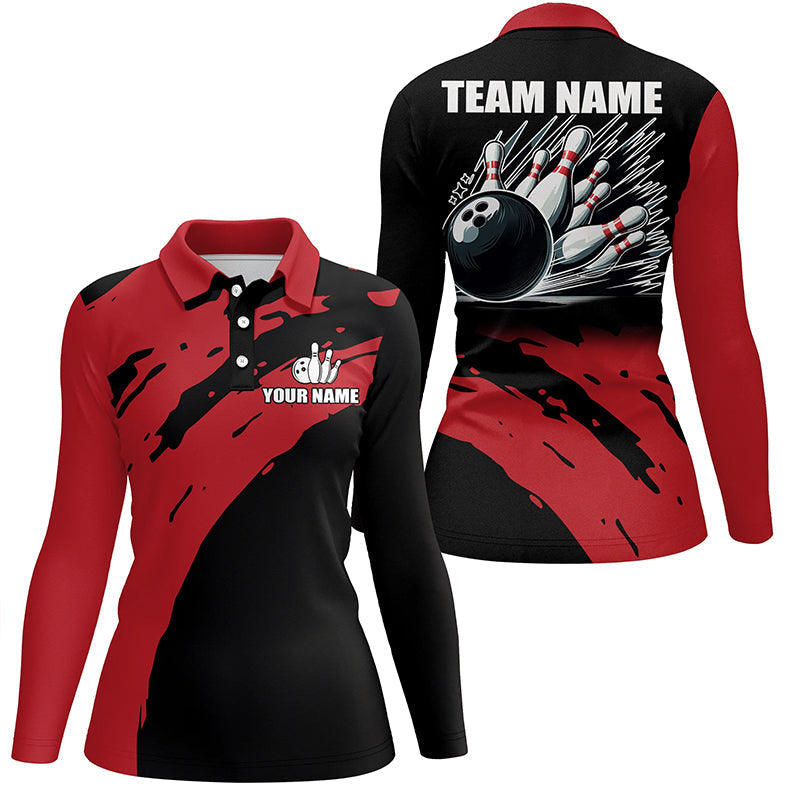 Red & Black Women's Bowling Polo Shirt - Custom Team Jersey N7289