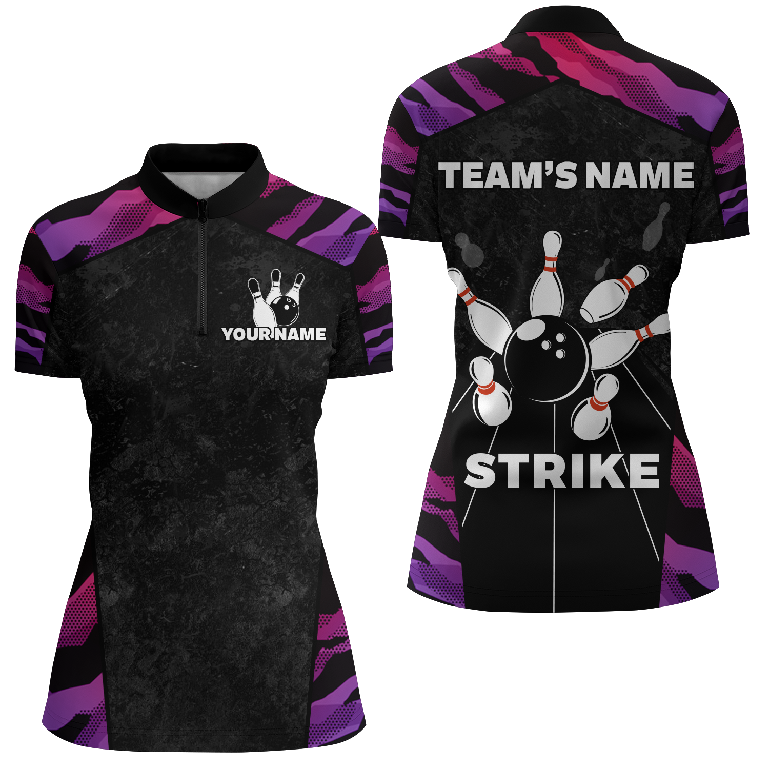Custom Red & Purple Bowling Quarter-Zip Shirts for Men & Women B448
