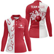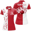 Red & White Vintage Bowling Polo Shirt for Women N6482