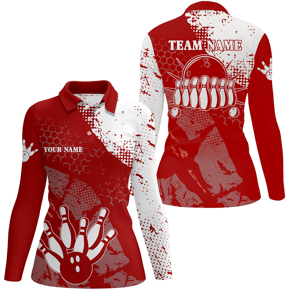 Red & White Women's Bowling Polo Shirt - Custom Retro Design N6500